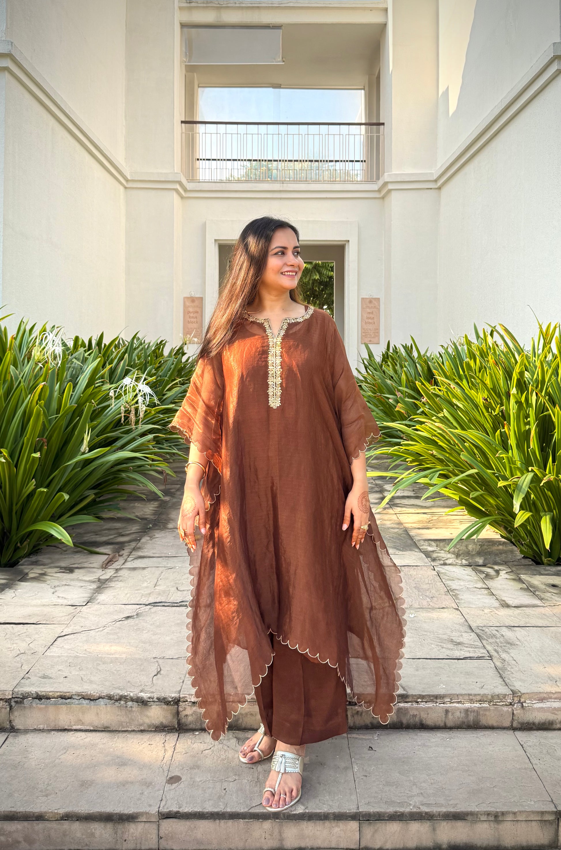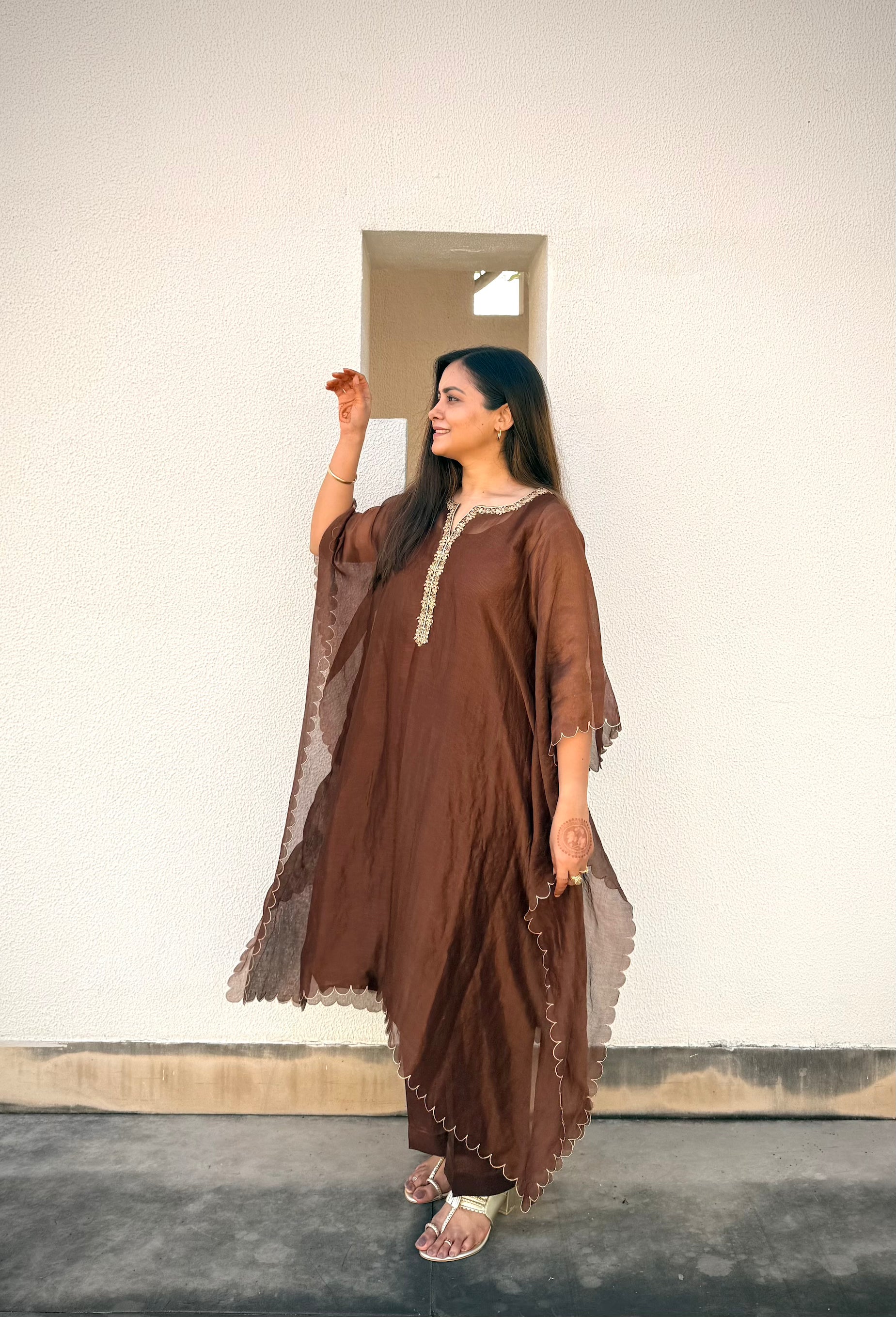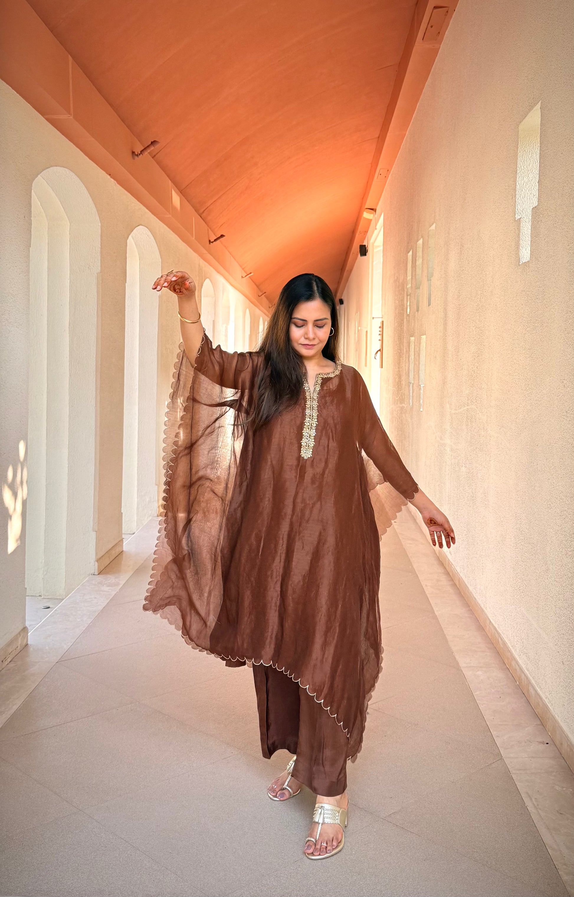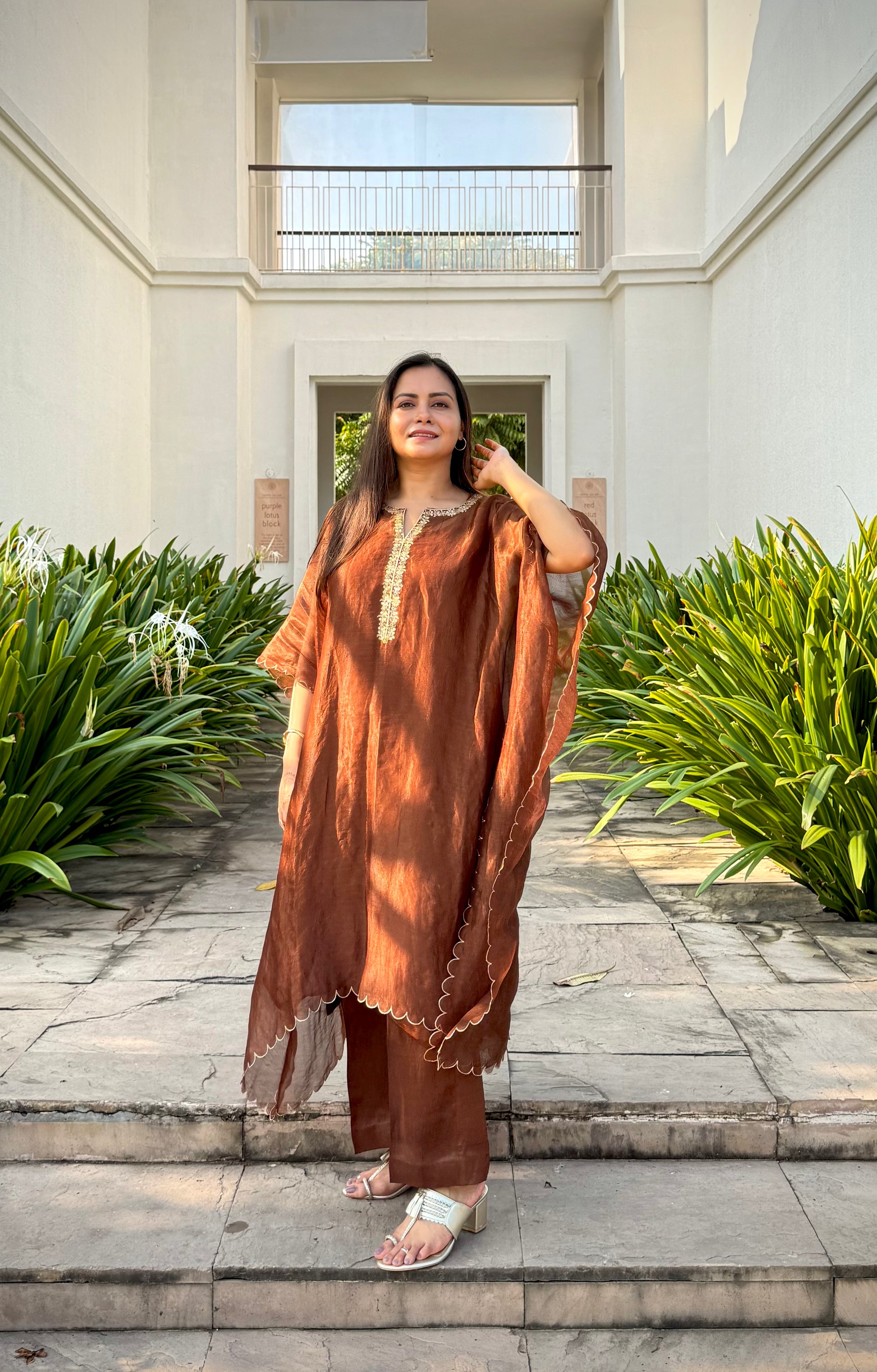 Delicate hand embroidery at neck line with zari, sequins and glass beads.